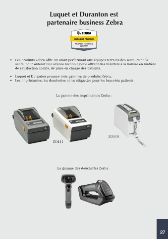 •  Luquet et Duranton propose trois gammes de produits Zebra.