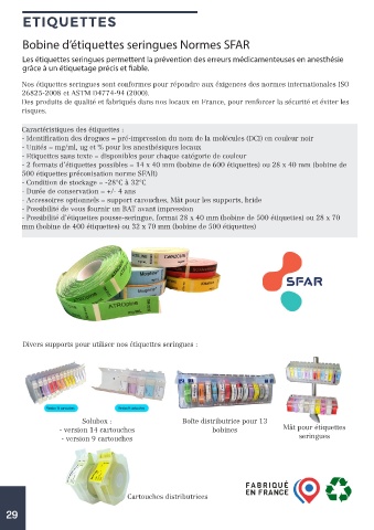 Bobine d’étiquettes seringues Normes SFAR