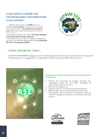responsables (papiers FSC et/ou PEFC, enveloppes NF