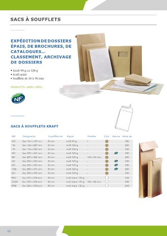 Réf. Désignation 3 soufflets de Papier Fenêtre Coul. Norme Boîte de