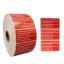 Ref. 36590 : bobine de 300 étiquettes 30×20 mm fond rouge (texte à personnalisé) – couché blanc satiné + film de protection PET transparent.