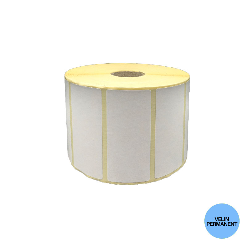 Rouleau d’étiquettes adhésives vélin blanc Format des étiquettes : 75×30 mm Diamètre du mandrin : 25 mm (disponible en 40 ou 75 mm)